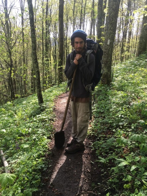 Cody Coyote harvesting ramps on the AT