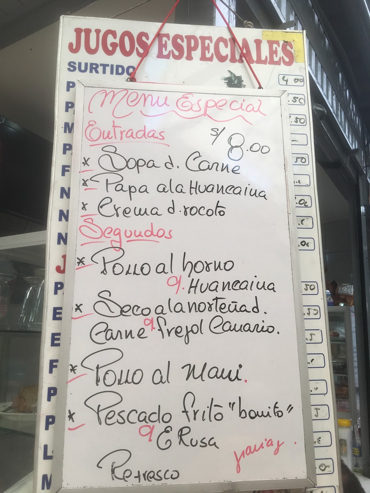COMPLETE LUNCH WITH DRINK S/ 8 = $2.45