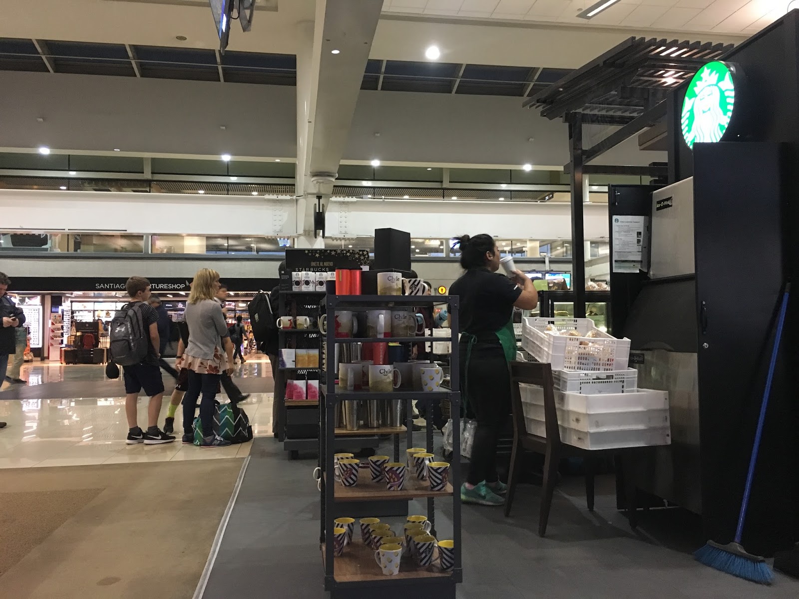 Found a charging station and comfortable chair behind Starbucks. Almost 6:30 am CLST – Chile Summer Time (Daylight Saving Time) Two hours ahead of EST Atlanta GA.